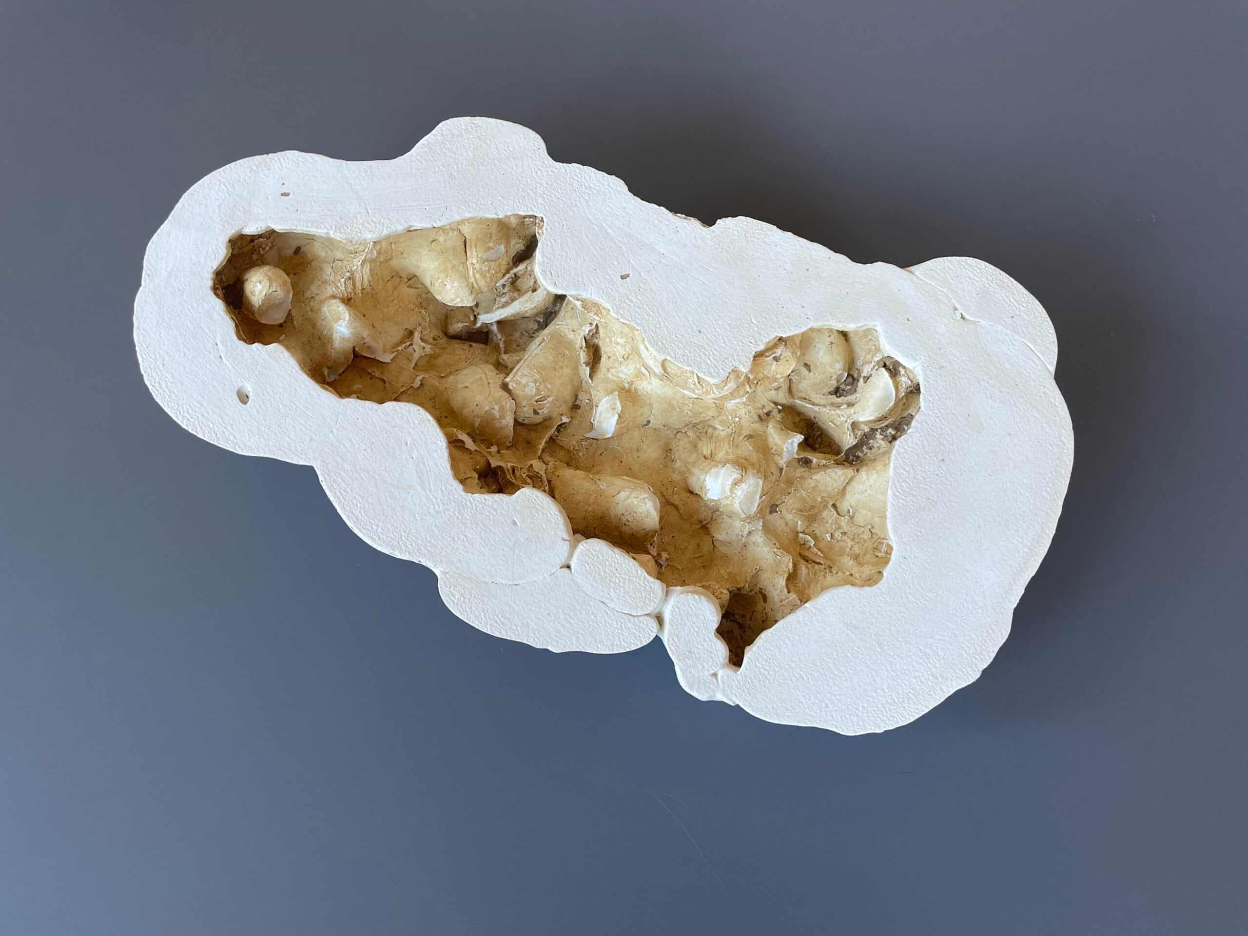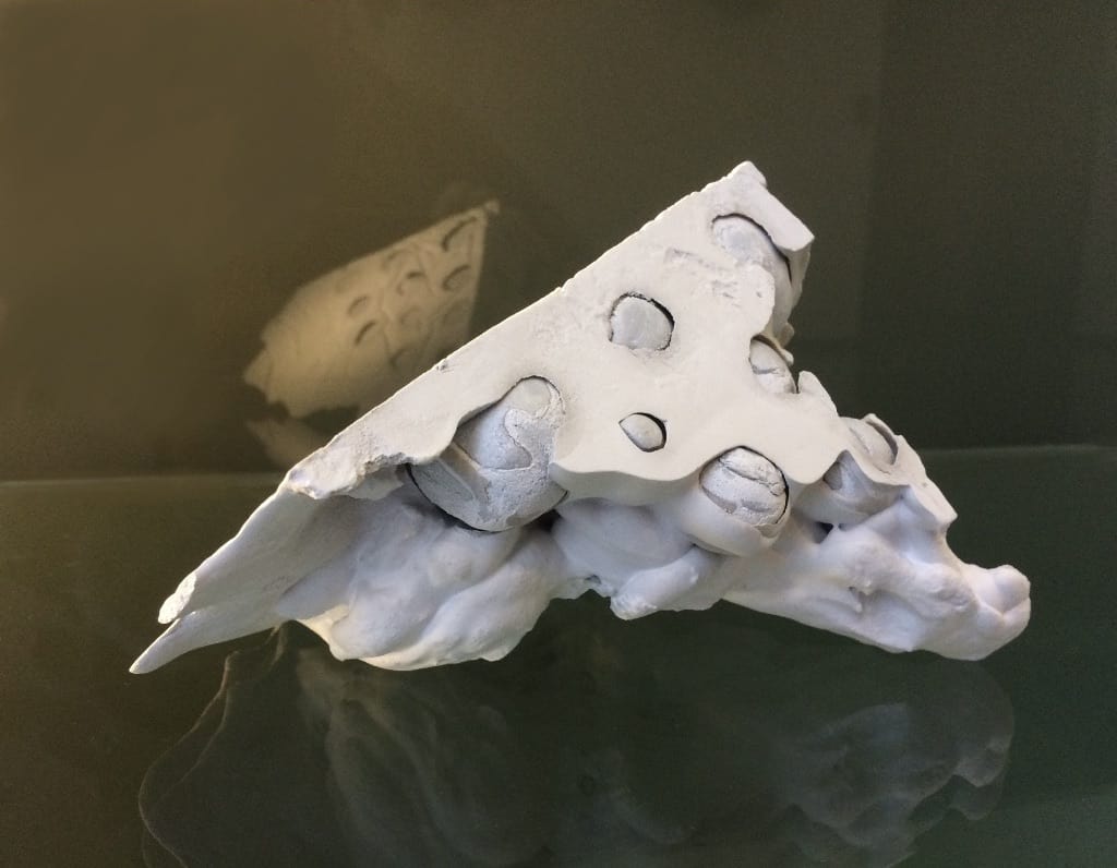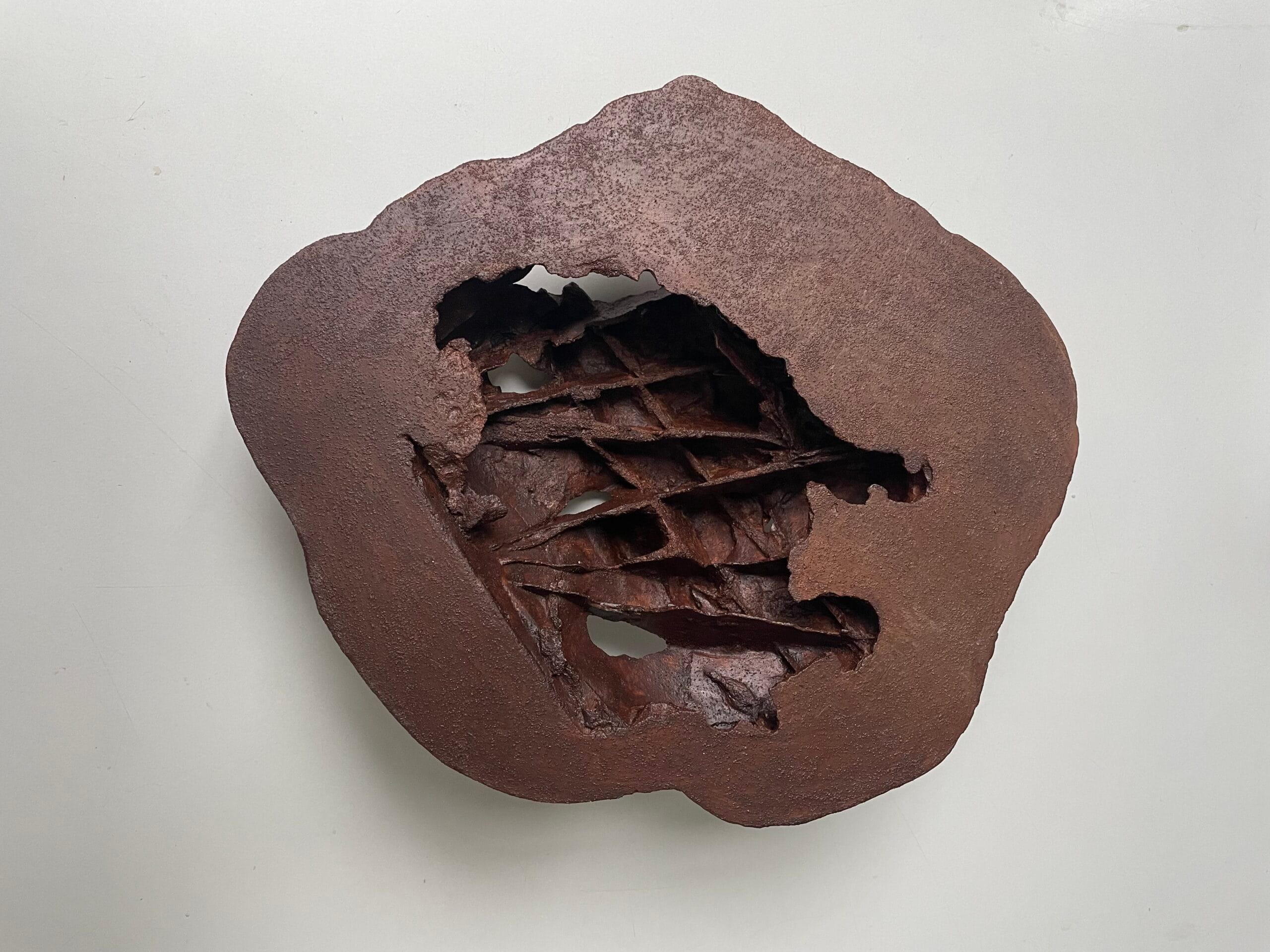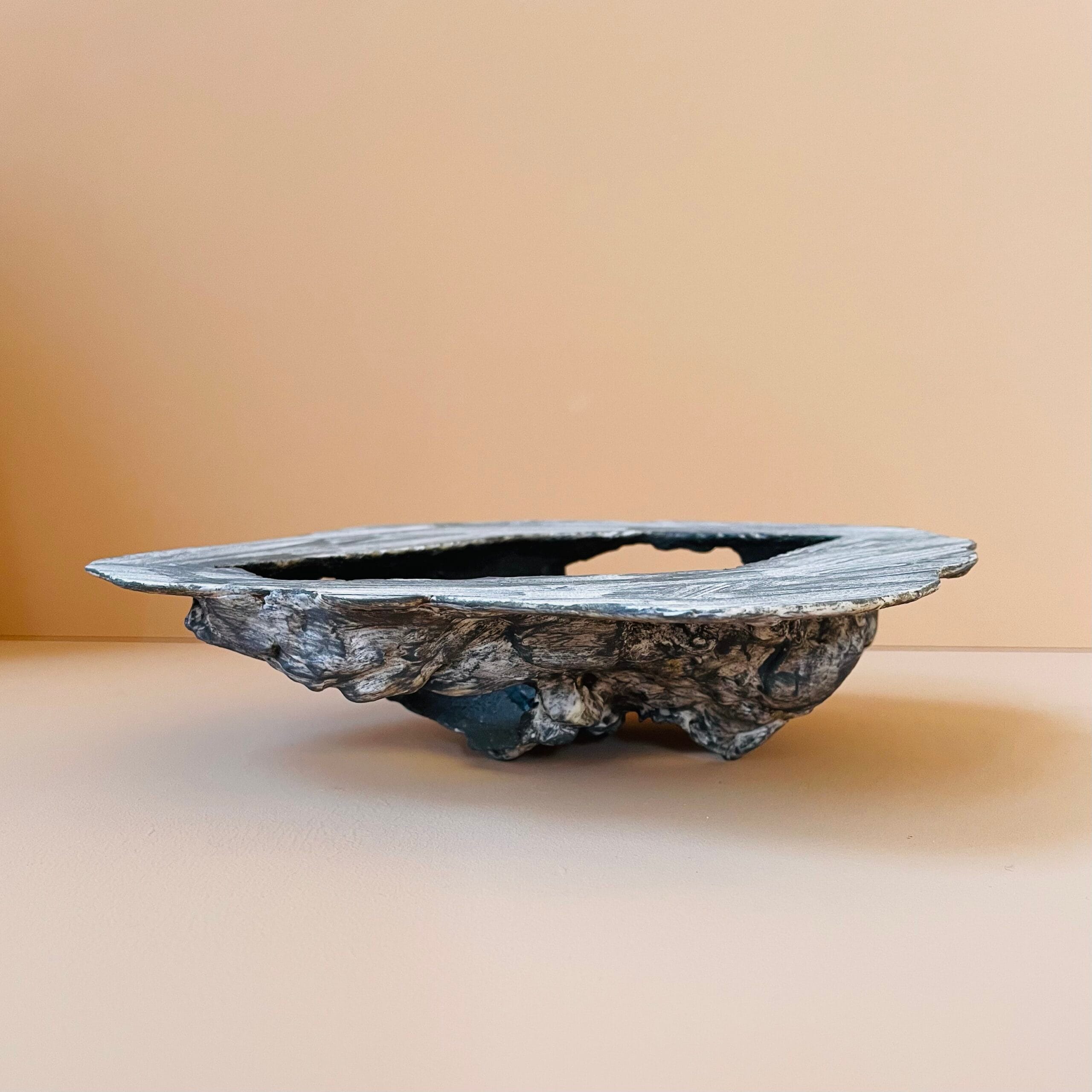 De schaalvormige objecten zijn een weerslag van structuren uit de natuur met de aantasting daarvan of een indringende psychische ervaring. De tegenstrijdigheid tussen de gladde rand en hetgeen daarbinnen gebeurt verbeeldt het contrast tussen de fragiele schone schijn en de onderhuidse opgebouwde structuren die men vaak niet te zien krijgen.